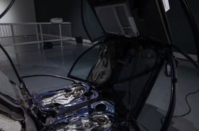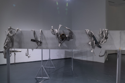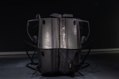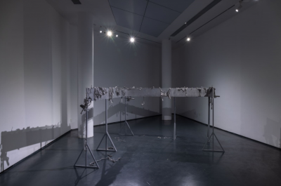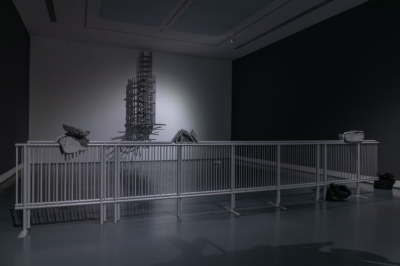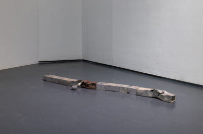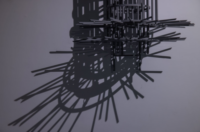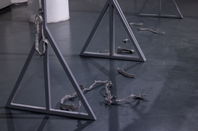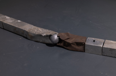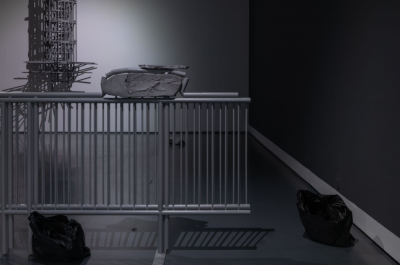 现在,您已经步入了这个别具一格的场域。与艺术家何岸以往的个人项目一样,展览现场依然强调空间和观念上的统一,对于日常暴力与其对人体的累计影响的探讨始终贯穿在整个空间里。说“暴力”或许言重了,尽管程度不一,我们都能发现每件作品上的物理痕迹。何岸不仅为重力赋形,还引发了一种可被感知的焦虑和渴望,也就是后疫情时代中的集体无意识的反映……尽管何岸告诉我,作品中出现的形似冠状病毒的元素,即辐条和球形,是无意识造就的结果。