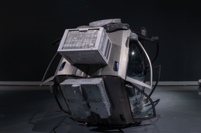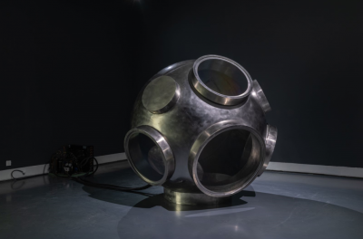 何岸会通过与他人协作来创作作品,以试探他所采用的材料以及制造工艺的极限。每种材料,每件拾得之物都自有其形式惯性,何岸的实验过程常常会对此惯性加以利用。很多时候,材料或物品本身都不做改动,孔洞不做填补,管道中的弯弯曲曲也保持其原本的形态,或者一件下坠物的冲击会决定其最终结果。种种过去的动作所留下的痕迹,都在暗暗指向看不见的历史,各种隐形的物理作用力,如现场空调所导致的温度变化,水滴的凝结,以及水滴坠向地面的冲击力。通过这一系列的牵扯和运转,何岸呈现了关于我们当下世界的隐喻和解读。它们的复古设计也可以看作是对他对青春的缅怀。