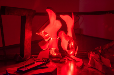 作为展览的尾声,展厅末端的两个空间包含两件何岸几年前创作的作品。何岸运用他独特的废旧霓虹灯牌的语言将两件作品的纯粹能量(光)引流集中。他运用常见——甚至不起眼的——材料建构了一种美学,并由此根植出了一种另类美感,即使这种美对很多人而言都是陌生的,或深或浅的、暴烈的冲击力和碰撞力;诉说着无法复刻的历史的表面留痕和刮擦;以及作品内容、光照、空气中的寒意或重力之中的能量流转,其中的诗意却是人人可及。