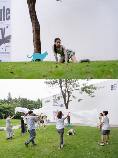 在作品生成期间,艺术家邀请了舞者吴梓岚、导演冯韵珊、乐手区智杰、灯光师胥文博与梁祺伟共同参与作品的创作。同时,基于驻地展览举办的公共教育活动不是展览的“配套”,而是完成作品的关键流程。如此一来,展览空间便朝着平台化与论坛化的方向不断生发。空间中的内容由艺术家发起,但知识的生产与传播却由不同领域的参与者、社区与观者共同完成。这是一场不在舞台中进行的“演出”,因而第四面墙不介乎于观者与舞台之间,而是存在于美术馆的“墙”之中。艺术家的创作试图打破“墙”的限制,编织出一个“无墙的幕后”故事。